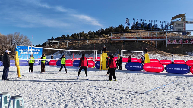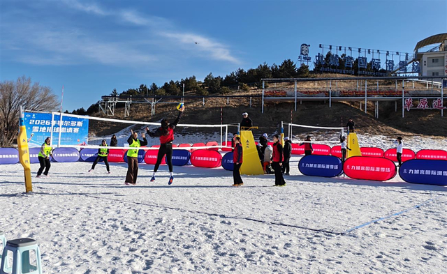 与传统室内排球不同,这里的赛场铺满了白雪,运动员们需要在雪地上展开较量。移动、起跳、扣杀,每个技术动作都因雪地的特殊性而更具挑战。尽管天气寒冷,队员们却展现出了极高的专注与热情。